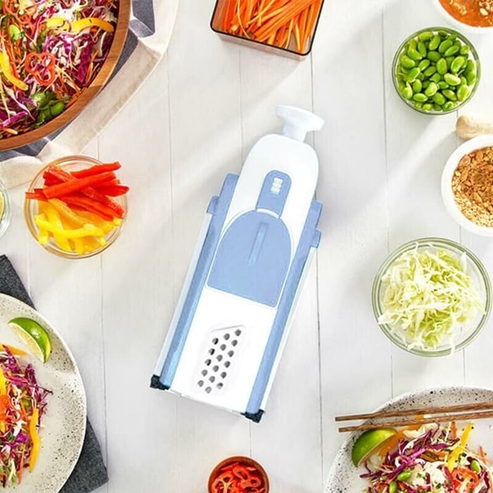 The blades enable easy cutting, slicing, shredding, and chopping of a variety of fruits and vegetables in various shapes and sizes. You can quickly produce wavy or standard slices, strips, mash potatoes, etc.